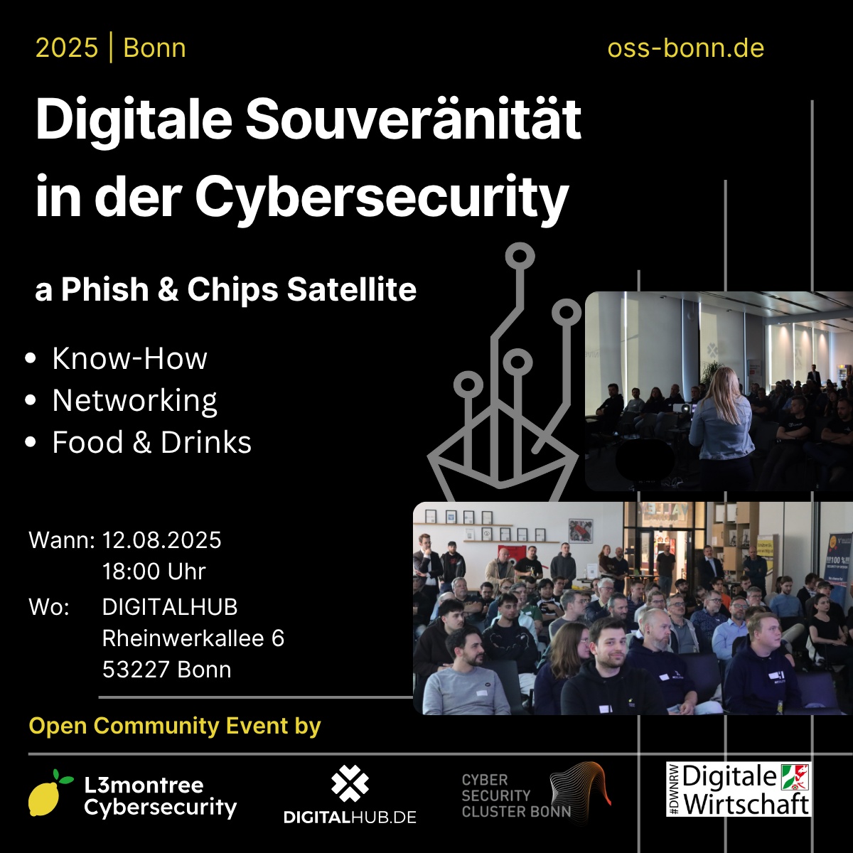 Im Vorlauf des Phish & Chips Cybersecurity Konferenz des DigitalHub Bonn, geht es in diesem Event um das Thema digitale Souveränität in der Cyber-Security.