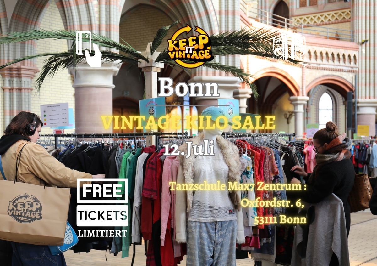 Am Samstag, den 12.07.2025, von 10:00–16:00 Uhr kommt Keep It Vintage nach Bonn in die Tanzschule Max7 Zentrum (Oxfordstraße 6, 53111 Bonn) und bringt eine riesige Auswahl an einzigartiger Secondhand-Mode und Accessoires mit.