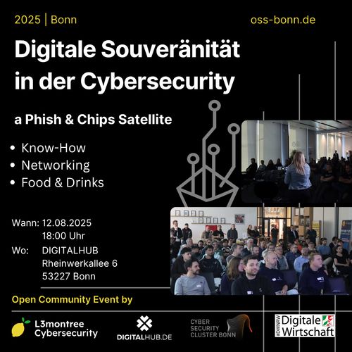 OSS-Event: Digitale Souveränität in der Cybersecurity Tuesday, Aug 12, 06:00 PM-10:00 PM Tuesday 12 August 22:00 DIGITALHUB.de BonnerBogen 6, Rheinwerkallee, Ramersdorf, Bonn-Beuel, Bonn, Nordrhein-Westfalen, 53227, Deutschland BonnCodingCybersecurityDatenschutzDigitales BonnIT-Sicherheit